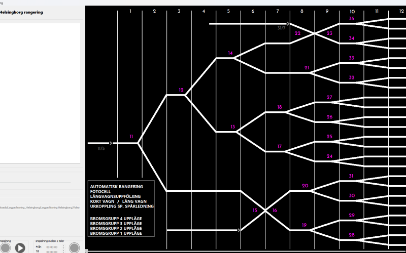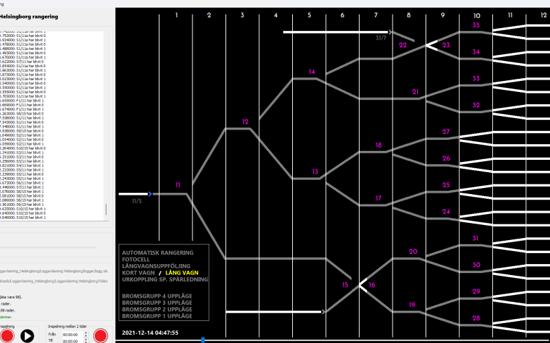 Loggfilerna läses in i programmet som gör om detta till en spårplan för att kunna spola fram och bakåt i händelseförloppet.